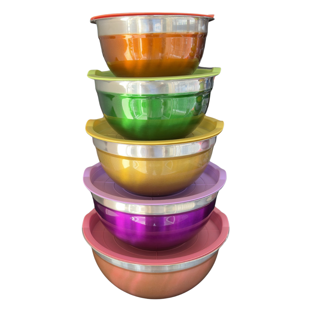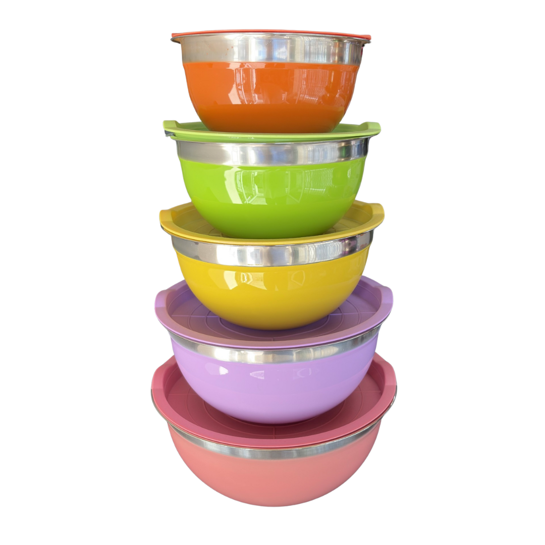Conservador de comida de acero inoxidable con tapa plástica (juego 5 en 1) (18, 20, 22, 24 y 26 CM)